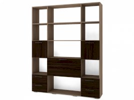 Применение задней стенки из ЛДСП (в ячейках с ящиками и фасадами) позволяет использовать данный стеллаж для зонирования пространства (чтобы предотвратить опрокидывание, необходимо обеспечить крепление стеллажа к стене).