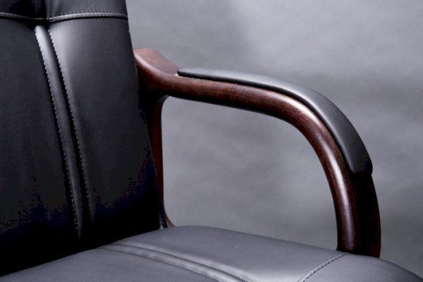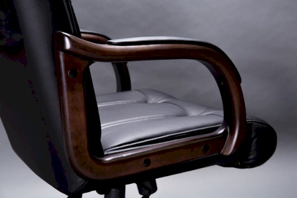 Кресло с низкой спинкой, с подлокотниками прямоугольной замкнутой формы с мягкими накладками обитыми в цвет кресла.