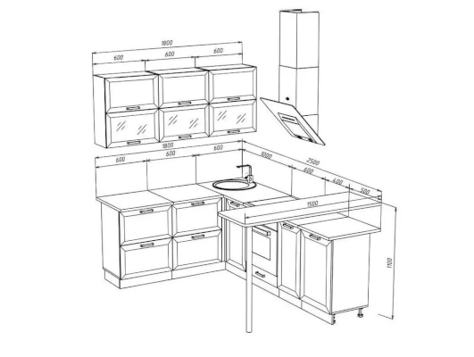 | Глубина нижних шкафов, мм | 490 / 600 |