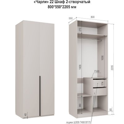 Двухстворчатый шкаф Чарли 22 (Аквилон)