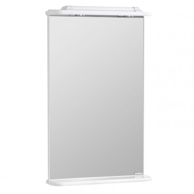 Зеркало Мира - функциональная модель, выполненная из влагостойкой ЛДСП. Белое глянцевое покрытие, благодаря полиэфирной краске УФ отверждения, позволяет защитить поверхность от внешних воздействий. Обработка зеркального полотна предназначена для использования во влажных помещениях. Для удобства хранения ванных принадлежностей предусмотрена нижняя полка, а встроенный светильник обеспечит необходимую подсветку. Управление подсветкой осуществляется внешним выключателем. Зеркало крепится к стене на два навеса.