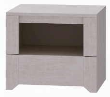 Прикроватная тумбочка с открытым ящиком для хранения мелочей под рукой.