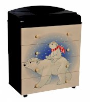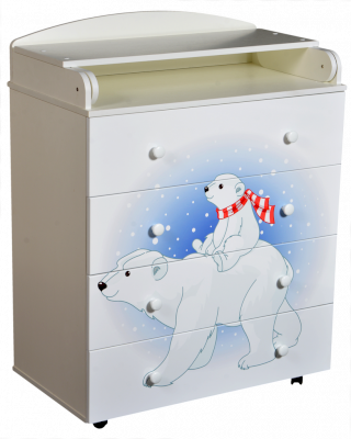 Пеленальный комод 800/4 Lilu 1 отличается привлекательным дизайном с использованием тематических детских принтов. В конструкции изделия предусмотрены 4 маленьких передвижных колеса, несколько вместительных ящичков на шариковых направляющих и откидывающаяся пеленальная столешница. Детский пеленальный комод, декорированный красочным рисунком, вмещает в себя постельные принадлежности, средства гигиены, распашонки, подгузники, игрушки, ползунки и другие личные вещи ребенка. Гладкая столешница идеально подходит для пеленания ребенка, а колесики позволяют быстро перемещать комод.