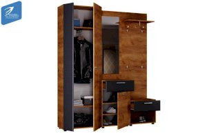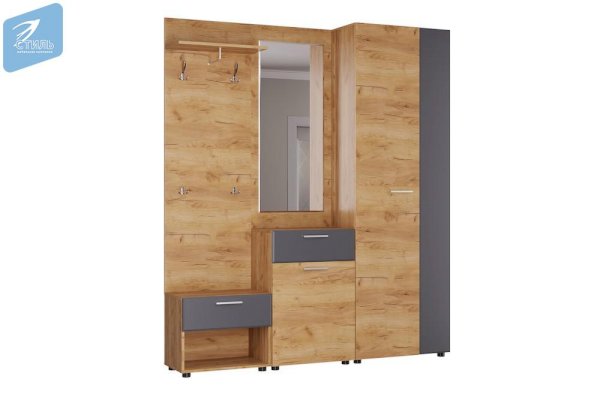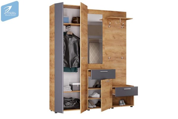 Внутреннее наполнение Модульная прихожая Сафари выполнена в современном выдержанном европейском стиле. Прихожая обладает элегантным дизайном, сочетающим изысканность цвета и фактур корпуса и фасадов яркого «Дуб Крафт золотой» и мягкого «Графит СОФТ».