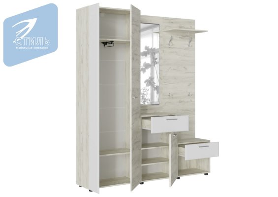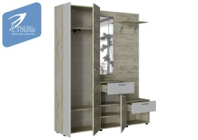Вместительные тумбы с выдвижными ящиками позволяют хранить как обувь, так и десятки необходимых мелочей. Большое зеркало с фацетом, по периметру, позволит не упустить ничего в своей внешности перед выходом из дома. А емкий шкаф вместит всю необходимую одежду, для актуального сезона.