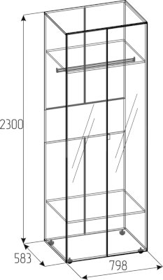Двухстворчатый Норвуд 54 Шкаф для одежды прекрасно подойдет для хранения одежды и белья в спальне. В этом варианте корпус совмещается с двумя фасадами Зеркало. Внутреннее наполнение модуля — стационарная штанга длиной 757 мм и две полки. Металлические ручки на фасадах позволят открывать дверь, не прикасаясь к зеркальному полотну. Зеркало с обратной стороны проклеено специальной пленкой, которая задержит падение осколков, если оно разобьется.