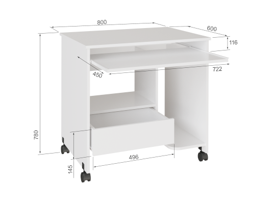 | Комплектация | выдвижная полка под клавиатуру / местодля принтера (техники) / ниша под системный блок |