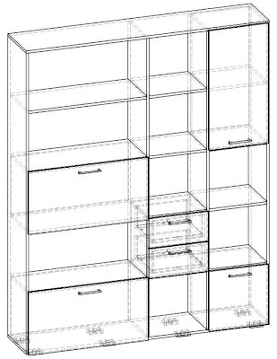 Применение задней стенки из ЛДСП (в ячейках с ящиками и фасадами) позволяет использовать данный стеллаж для зонирования пространства (чтобы предотвратить опрокидывание, необходимо обеспечить крепление стеллажа к стене).
