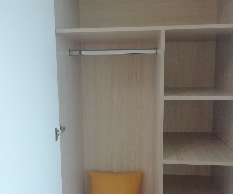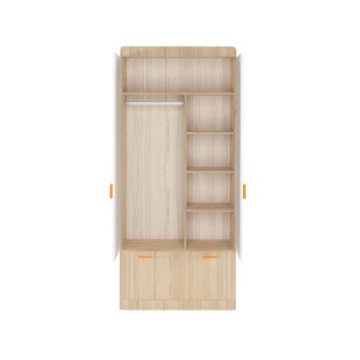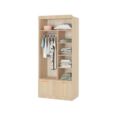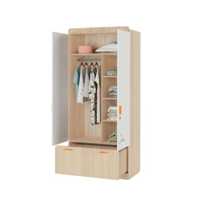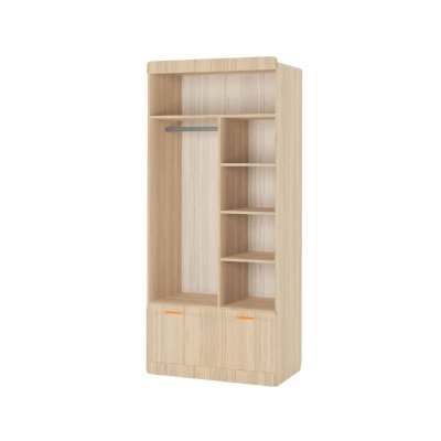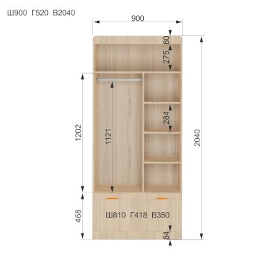 Наполнение: выдвижной ящик на шариковых направляющих глубиной 450 мм, петли с доводчиком, штанга для одежды, полки