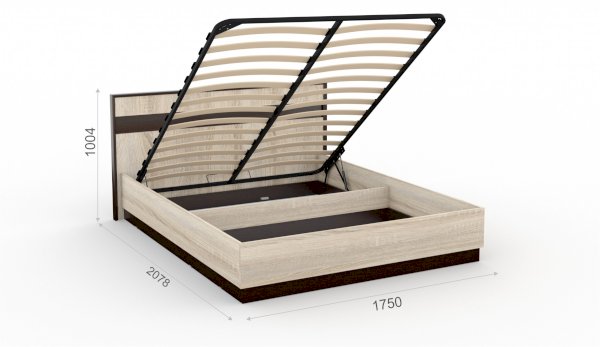 Ортопедическое основание на газовых лифтах: подъемная часть кровати надежно фиксируется в открытом и закрытом положении. Есть секция для хранения белья. Дно бельевого короба из ХДФ плотно прибито к коробу кровати – не имеет ограничений по весу