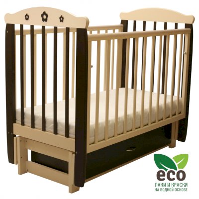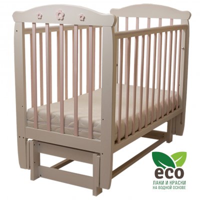 варианты цветовых решений Кроватка "Соня 05" имеет механизм качания продольный маятник. Механизм качания фиксируется. Возможен вариант кровати с ящиком.