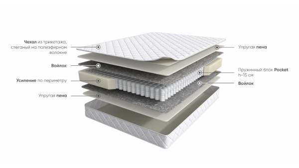 Наполнитель: ППУ, независимый пружинный блок, термовойлок