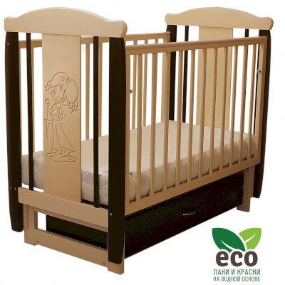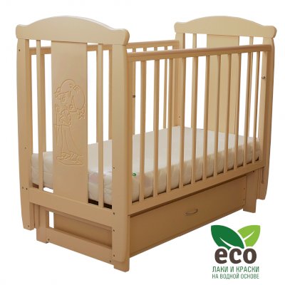 Кроватка декорирована фрезерным рисунком "Девочка". Уникальные фрезерные рисунки размером от 50 см на обеих спинках.