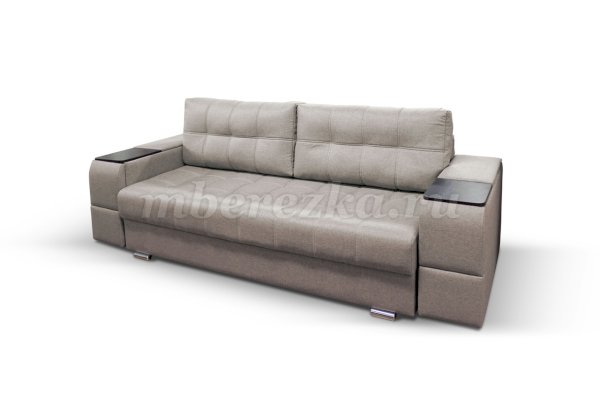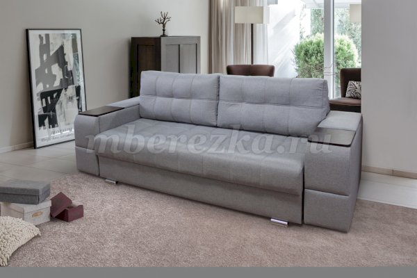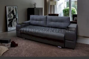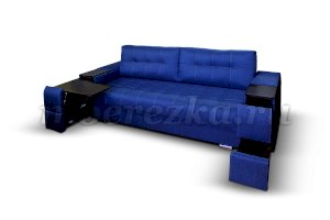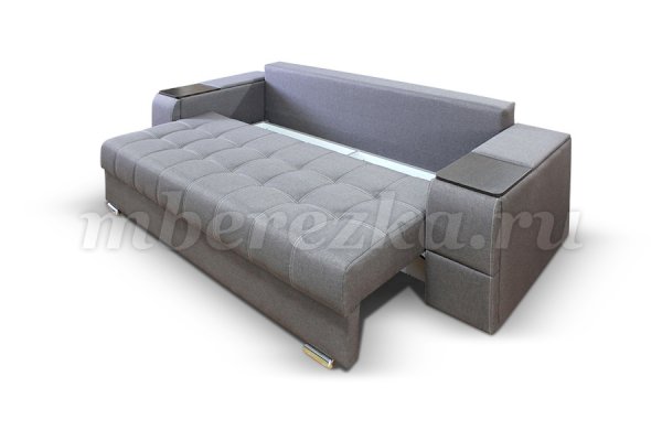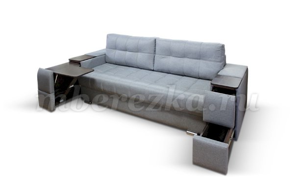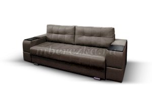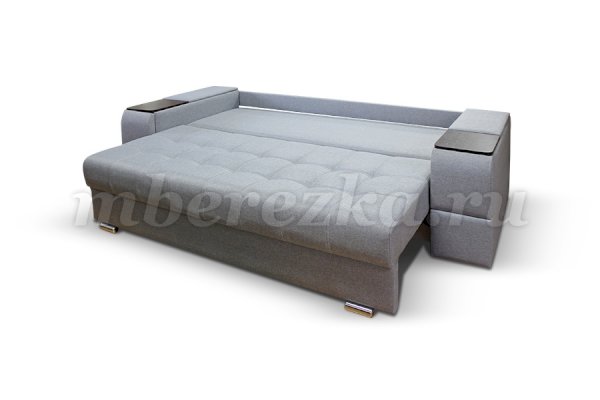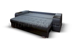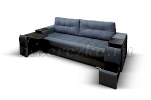 Диван со столиком значительно экономит пространство в помещении и, несомненно, делает отдых на диване комфортнее, ведь буквально под рукой есть раскладной столик в подлокотнике, на который можно поставить бокал, положить книгу или журнал, удобен при работе с ноутбуком. Другой подлокотник оборудован выдвижными полочками для хранения различных вещей. Большой ящик для белья внутри дивана, простой, и надежный механизм трансформации «тик-так» подтверждают функциональность этой модели. Блок независимых пружин, прошивка на сиденье – гарантия длительной эксплуатации дивана.