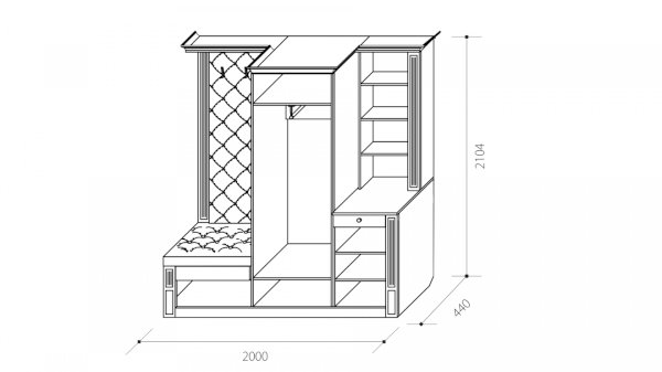 • Объем: ДхВхШ: 2000х2104х440 мм