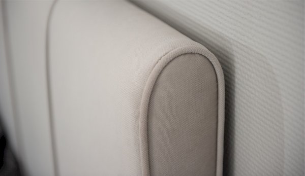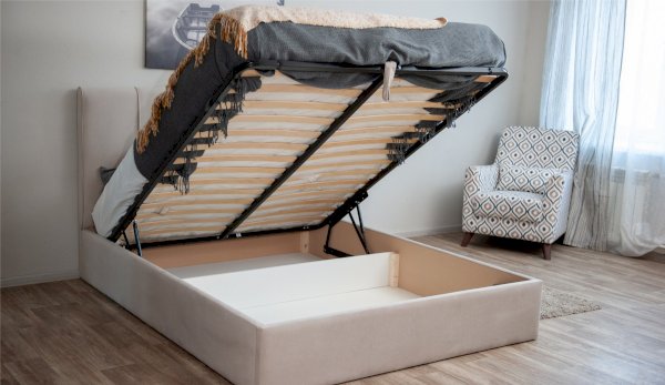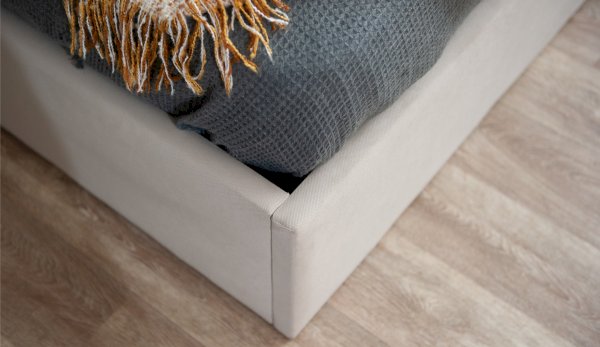 Современная удобная и эргономичная кровать с высоким мягким изголовьем, декорированным вертикальными кантами, создает в спальне комфортную и уютную атмосферу. Практичная мягкая ворсистая поверхность обивки ярких цветов, вызывающая приятные тактильные ощущения, идеально точно повторяет силуэт конструкции кровати, украшает и облагораживает спальню. Вместительный бельевой ящик увеличит полезную площадь спальни и станет дополнительным местом для хранения необходимых вещей.