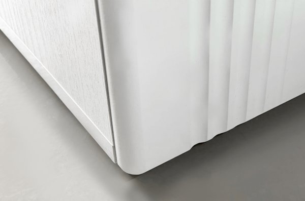 Материалы корпуса изготовлены из высококачественного лдсп белого дерева, а фасады выполнены из мдф, облицованного пленкой пвх в белом матовом цвете. Дополнительной особенностью фасада являются вертикальные полосы, созданные с помощью фрезеровки, добавляющие шкафу неповторимый шарм.