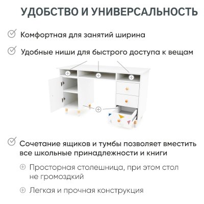 • Конструкция стола отвечает всем требованиям ГОСТ