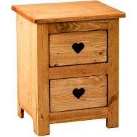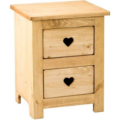 Аккуратная тумбочка для спальни из натурального дерева в стиле Прованс. Ящики декорированы резным сердцем, которое одновременно является ручкой для выдвижения ящика.