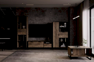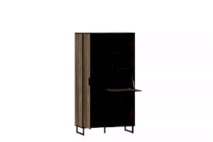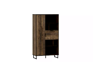 Комбинированный шкаф из коллекции ФОЛК легко впишется в интерьер гостиной в стиле Лофт, придав ей современный и монументальный вид. Черные лаконичные ручки и металлические опоры подчеркивают оригинальный дизайн мебели, а черная кромка эффектно выделяет фасад изделия.