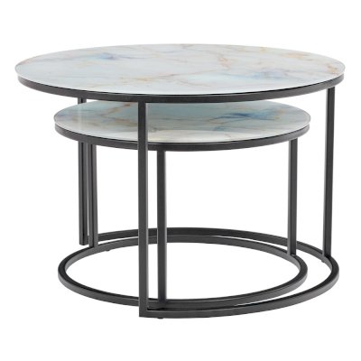 Элегантная пара кофейных столиков Tango станет изящным дополнением любой гостиной или даже спальни. Рисунок на столешнице, выполненной из закалённого стекла с имитацией натурального камня, завораживает и притягивает взгляд. Столики можно расположить парой или расставить по отдельности. Чёрные ножки позволят вписать этот набор в любой интерьер.