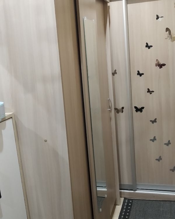 Хороший вариант для тех у кого мало места но нужен шкаф. Он достаточно узкий , но жаль что не высокий. Хотелось бы выше. Сам шкаф привезли раньше заявленного срока, что радует. В сборке не сложный. По цвету симпатичный. Зеркало идёт на двусторонний скотч можно прилепить в любое место