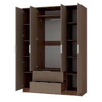 Шкаф четырёхстворчатый (ШК-11) имеет пять удобных полок по бокам для хранения одежды. Помимо этого, по центру расположены две вместительные секции для хранения ежедневной одежды. В нижней части шкафу находятся два вместительных ящика — это идеальное место для хранения обуви или постельного белья.