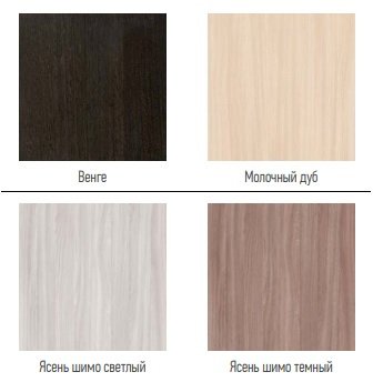 | Цвет | БЕЖЕВЫЙ / БЕЛЫЙ / ВЕНГЕ / КОРИЧНЕВЫЙ / СЕРЫЙ / КОРИЧНЕВОЕ ДЕРЕВО / СВЕТЛОЕ ДЕРЕВО / СЕРОЕ ДЕРЕВО / ЯСЕНЬ ШИМО ТЕМНЫЙ / ЯСЕНЬ ШИМО СВЕТЛЫЙ / ВЕНГЕ / ДУБ |
