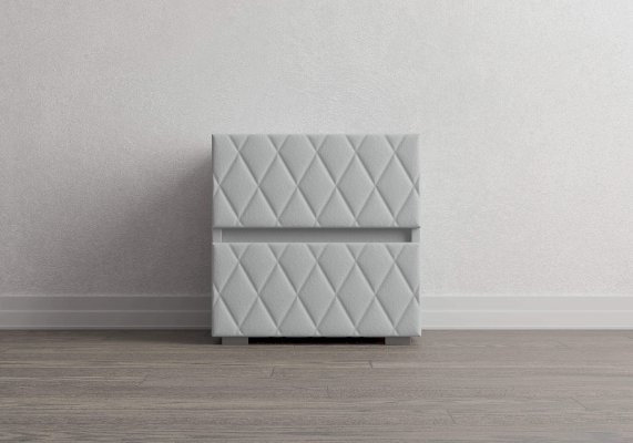 Тумба с мягкими фасадами, украшенными изысканной стежкой в виде ромбов, представляет собой идеальное сочетание утонченного дизайна и функциональности. Два выдвижных ящика с направляющими скрытого монтажа оснащены доводчиками. Тумбу дополнительно можно укомплектовать стеклянной столешницей. Широкий выбор фактур и цветов исполнения.