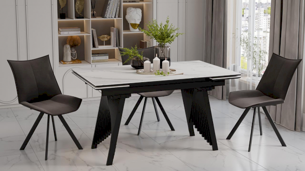Стол имеет синхронный механизм раздвижения с торцевыми вставками по бокам. Это выручает в моменты прихода гостей, которых хочется разместить свободно и с комфортом. Процесс сборки стола минимальный, столешница поставляется уже в собранном виде, остается только прикрутить опоры.