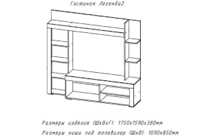 Ниша под ТВ (ШхВ): 1090х850 мм
