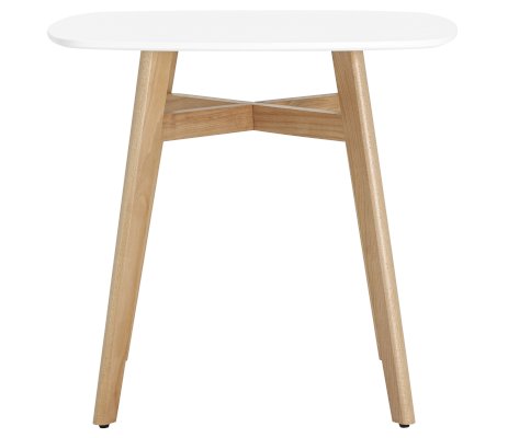 Оригинальный стол в современном стиле станет прекрасным дополнением кухни или обеденной зоны. Квадратная столешница выполнена из МДФ, окрашенного в белый цвет. Ножки стола изготовлены из массива бука.