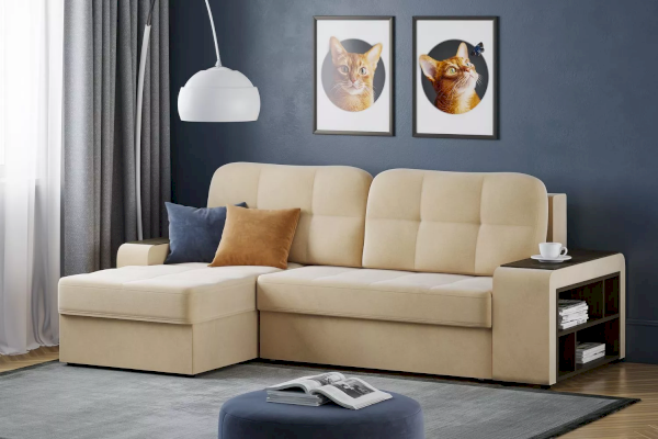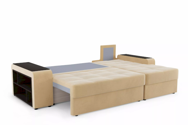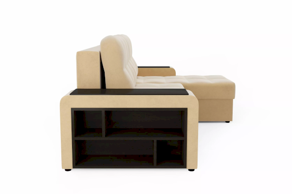 Такой диван не составит труда складывать и раскладывать каждый вечер и утро. Боковины оснащены декоративными накладками, которые обеспечивают дополнительную рабочую поверхность, а в одну из боковин интегрирована полка для хранения книг, журналов, гаджетов.
